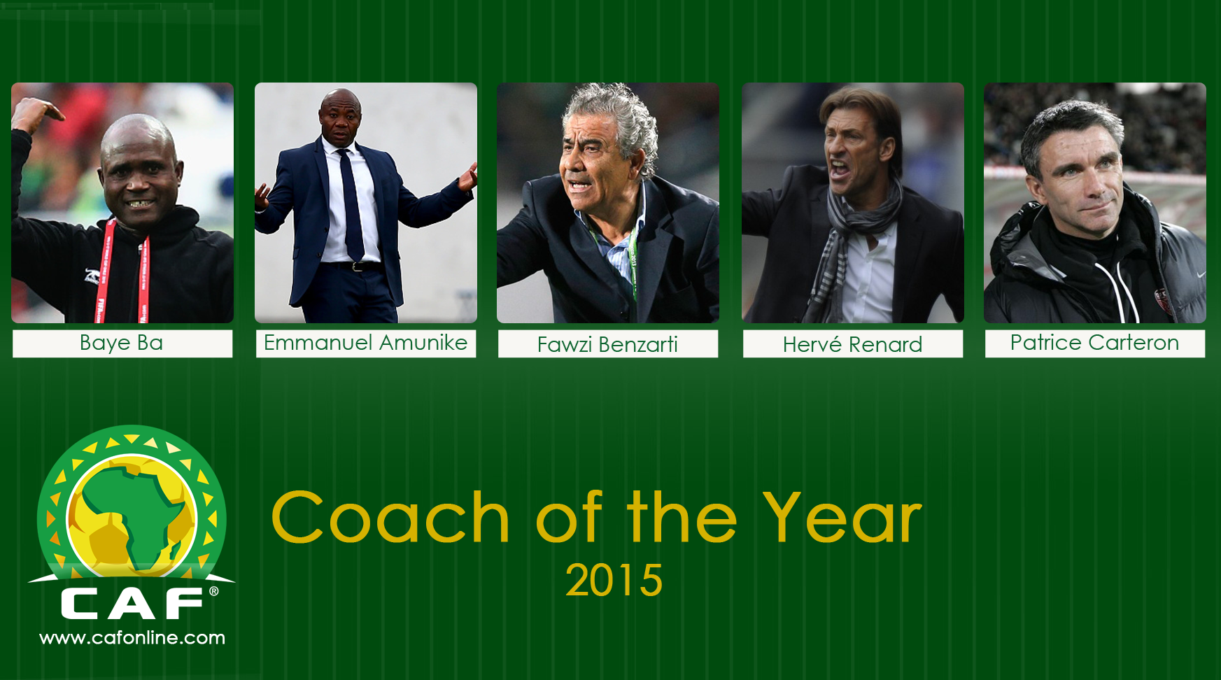 كشف الاتحاد الأفريقي لكرة القدم (الكاف) في بيان على موقعه الرسمي عن قائمة المدربين الخمسة المرشحين لجائزة أفضل مدرب في أفريقيا لسنة 2015.